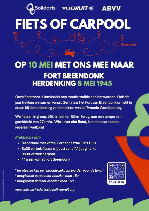 Onze fietstocht is inmiddels een mooie traditie aan het worden. Ook dit jaar trekken we samen vanuit Gent naar het Fort van Breendonk om stil te staan bij de herdenking van het einde van de Tweede Wereldoorlog.